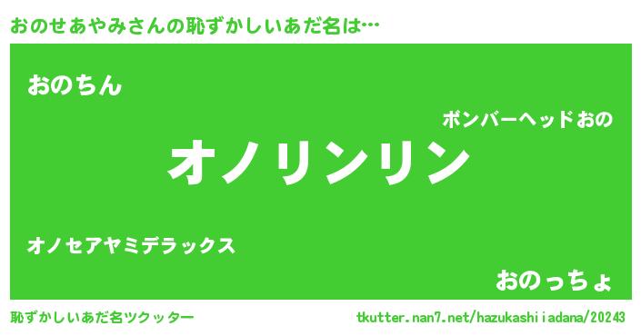 | 意味不明あだ名 | 『住所不定無職おのせあやみ(86歳)』 |