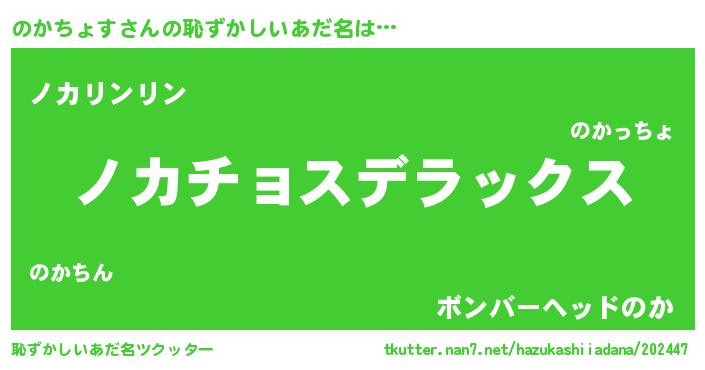 | 肩書あだ名 | 『のかちょす上級大将』『のかちょす艦長』 |