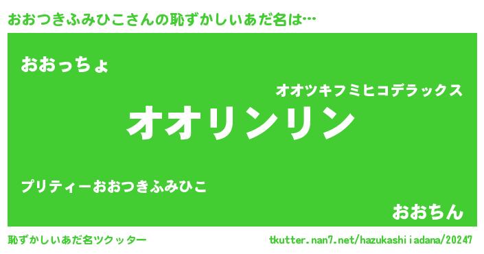 | 男性向けラノベタイトル風あだ名 | 『転生したらおおつきふみひこだった件』 |