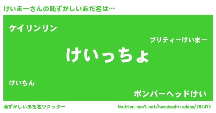 | 欧米人風あだ名 | 『けいまークリステル』 |