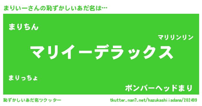 | 男性向けラノベタイトル風あだ名 | 『魔法科高校のまりいー』 |