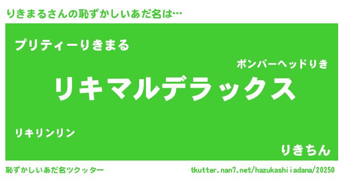 | 意味不明あだ名 | 『自称りきまる』『ペロリンりきまる』 |