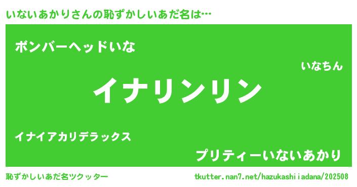 | 意味不明あだ名 | 『とにかく怪しいいないあかり』 |