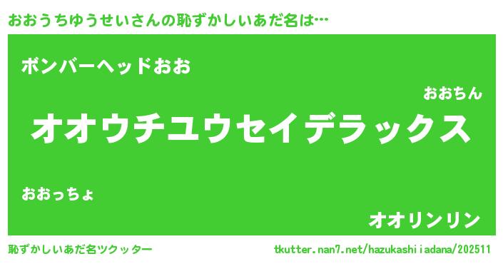 | 意味不明あだ名 | 『自称おおうちゆうせい』 |