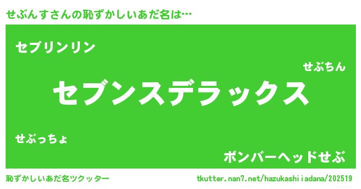| 意味不明あだ名 | 『自称せぶんす』『永久保存せぶんす』 |