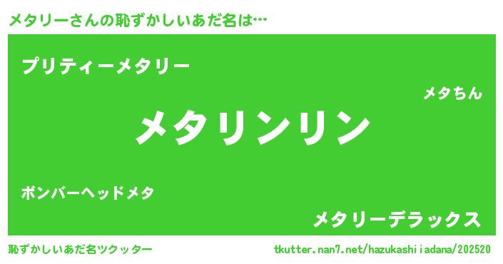 | 意味不明あだ名 | 『とにかく怪しいメタリー』 |