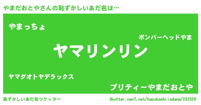| ポケモン風あだ名 | 『ヤマゴンZ』『ヒヤマダオトヤ』 |