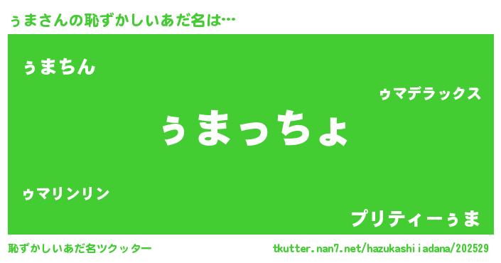 | 肩書あだ名 | 『ぅま船長』『ぅま大将』『ぅま教頭』 |