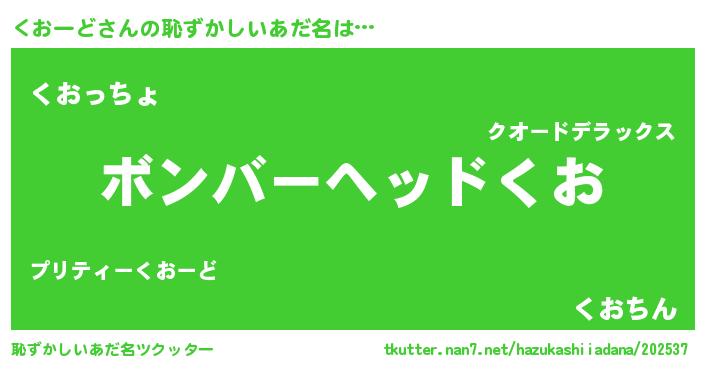 | 意味不明あだ名 | 『住所不定無職くおーど(62歳)』 |