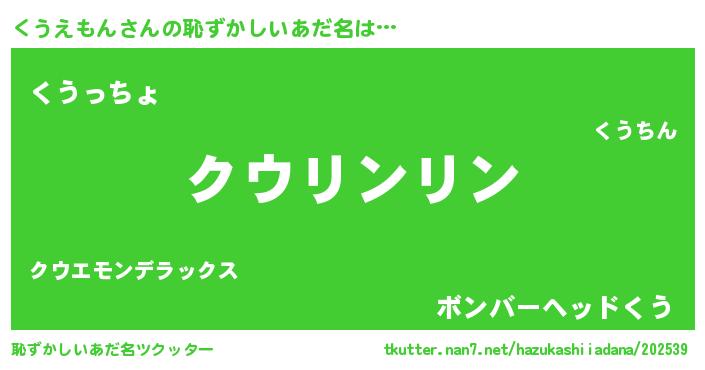 | 意味不明あだ名 | 『たけのこ科くうえもん属』 |