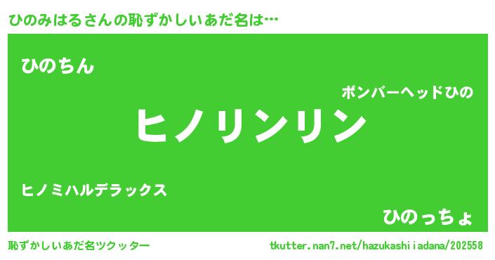 | ヘコむあだ名 | 『ひのを』『ひのみはる(笑)』 |