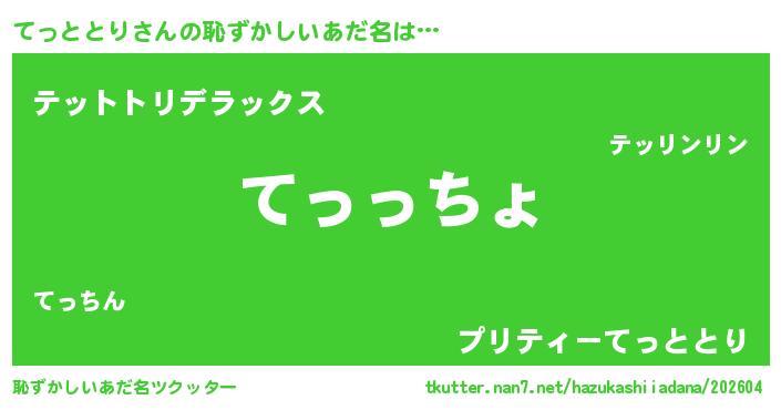 | 意味不明あだ名 | 『てっととりフォーエバー』 |