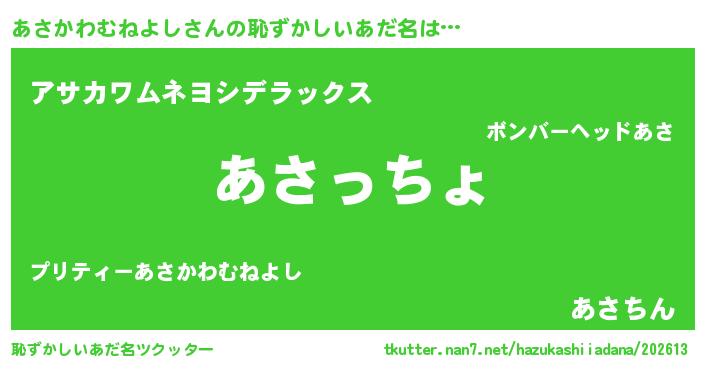 | 意味不明あだ名 | 『あさかわむねよしフォーエバー』 |