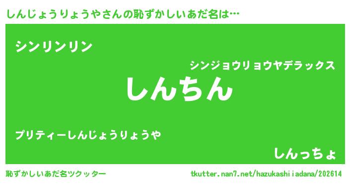 | 意味不明あだ名 | 『永久保存しんじょうりょうや』 |