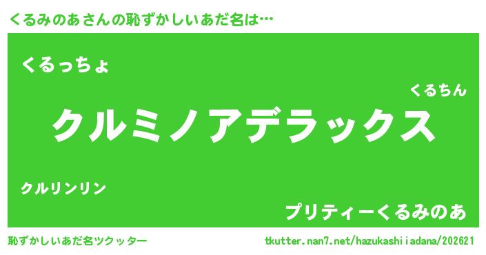 | 意味不明あだ名 | 『自称くるみのあ』『ペロリンくるみのあ』 |