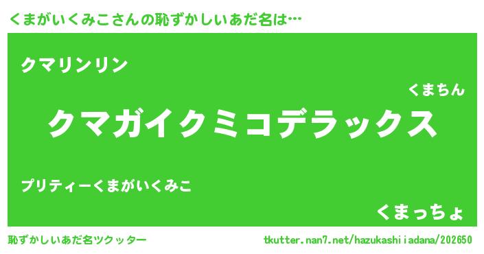 | 意味不明あだ名 | 『自称くまがいくみこ』 |