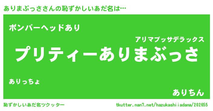 | 肩書あだ名 | 『ありまぶっさCEO』『ありまぶっさ艦長』 |