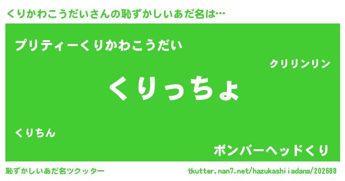 | 欧米人風あだ名 | 『くりかわこうだいクリステル』 |