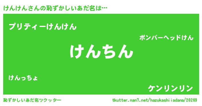 | 意味不明あだ名 | 『永久保存けんけん』『ペロリンけんけん』 |