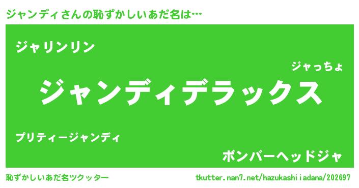 | 男性向けラノベタイトル風あだ名 | 『Re:ジャンディから始める異世界生活』 |
