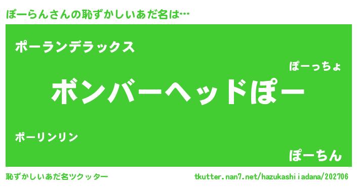 | ヘコむあだ名 | 『ぽーらん(笑)』『牛乳』『ぽーっ子』 |