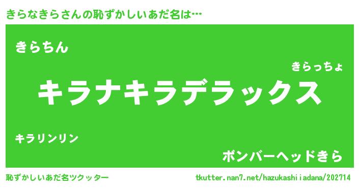 | 意味不明あだ名 | 『自称きらなきら』『永久保存きらなきら』 |