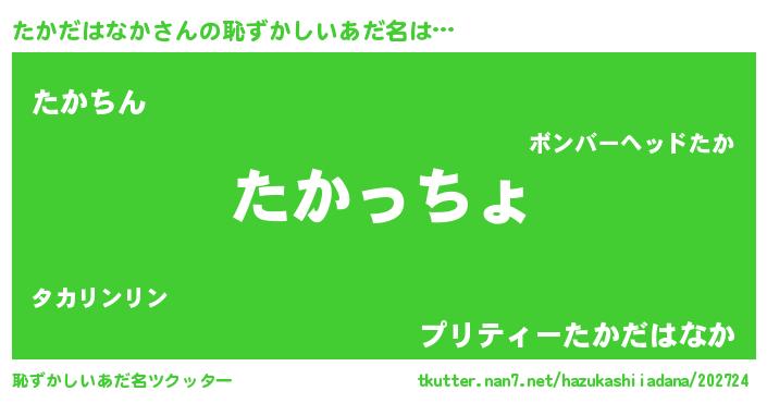 | ファンタジー風あだ名 | 『エターナルタカダハナカー』 |