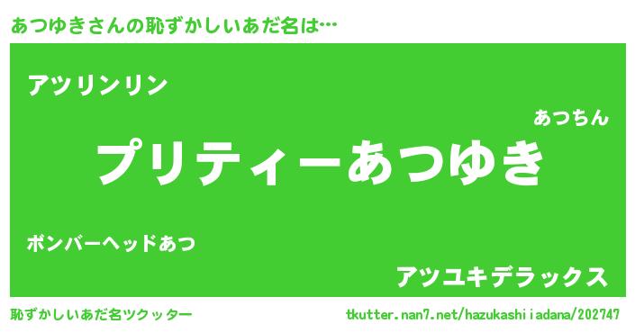| 胡散臭い通販商品みたいなあだ名 | 『億万長者になれる水晶球…その名も「あつゆき」』 |