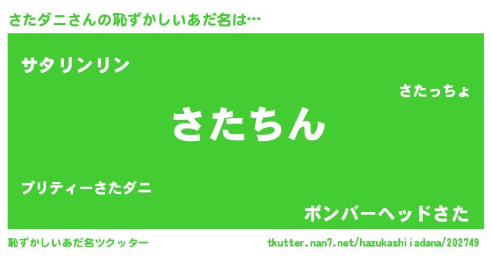 | ヘコむあだ名 | 『さたダニ(笑)』『さたぷりん』 |