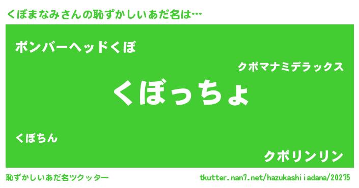 | 女子向けラノベタイトル風あだ名 | 『乙女ゲームの破滅フラグしかない悪役くぼまなみに転生してしまった…』 |