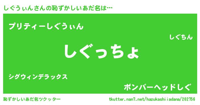 | 意味不明あだ名 | 『しぐうぃんフォーエバー』 |