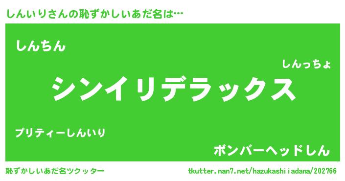 | 男性向けラノベタイトル風あだ名 | 『この素晴らしい世界にしんいりを!』 |