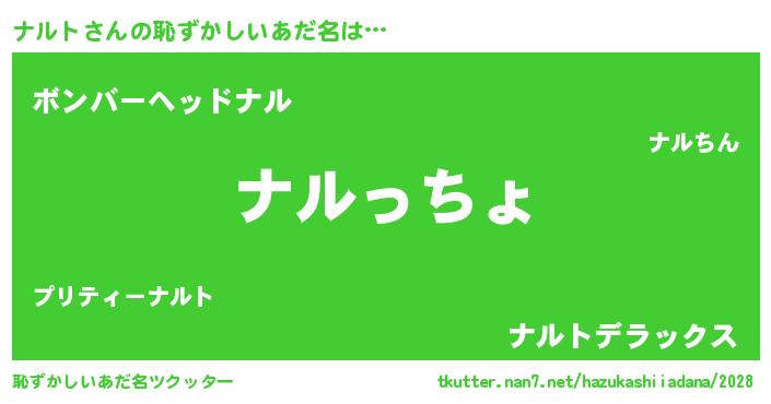 | 女子向けラノベタイトル風あだ名 | 『ナルトの雑貨屋さん』 |