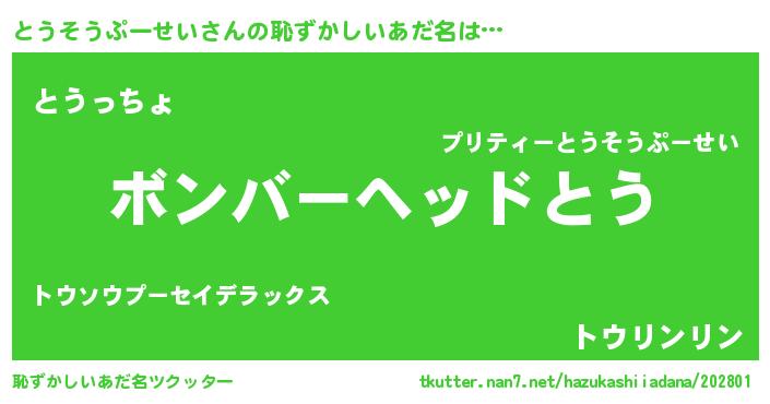| 意味不明あだ名 | 『住所不定無職とうそうぷーせい(68歳)』 |