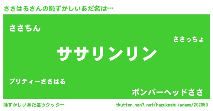| 意味不明あだ名 | 『とにかく怪しいささはる』 |