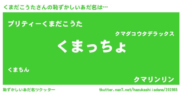 | 意味不明あだ名 | 『住所不定無職くまだこうた(4歳)』 |