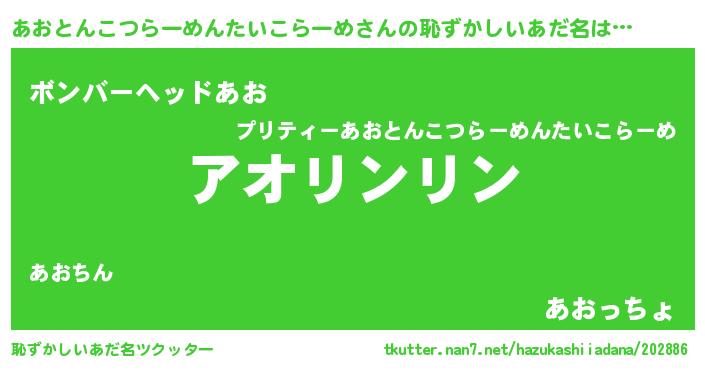 | 男性向けラノベタイトル風あだ名 | 『ダンジョンにあおとんこつらーめんたいこらーめを求めるのは間違っているだろうか』 |