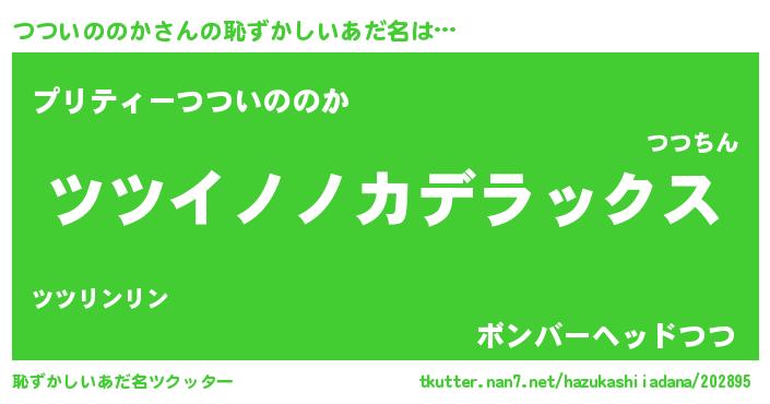 | 女子向けラノベタイトル風あだ名 | 『つついののかストレイドッグス』 |