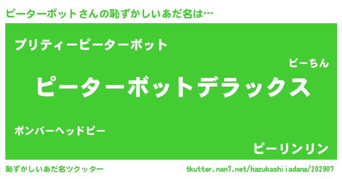 | 女子向けラノベタイトル風あだ名 | 『ピーターボットなんてお断りですっ。』 |