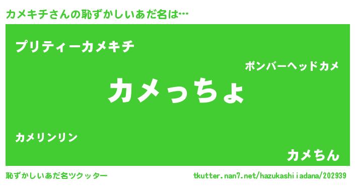 | 欧米人風あだ名 | 『カメキチクリステル』 |