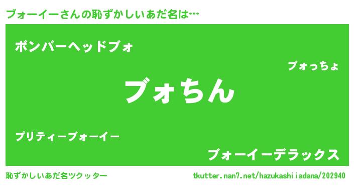 | 意味不明あだ名 | 『永久保存ブォーイー』『自称ブォーイー』 |
