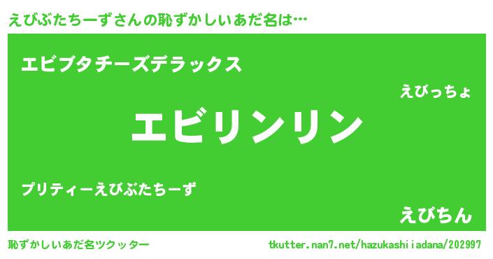| ヘコむあだ名 | 『えびっぺ』『えびぶたちーず(小並感)』 |
