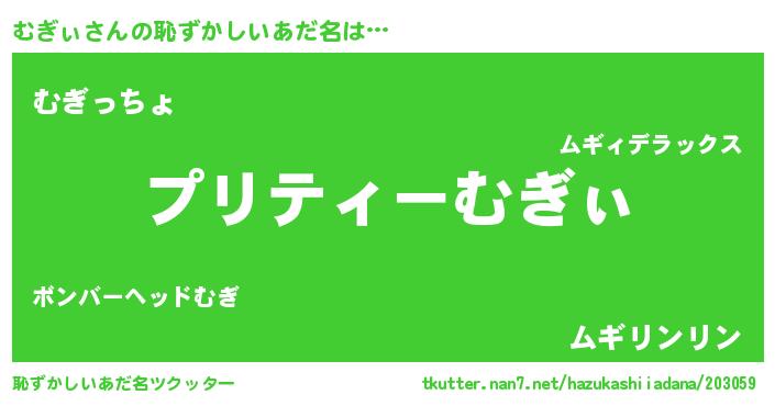 | ヒーロー風カッコイイあだ名 | 『スーパームギィ』『ウルトラむぎぃマン』 |