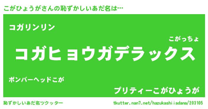 | 意味不明あだ名 | 『自称こがひょうが』 |