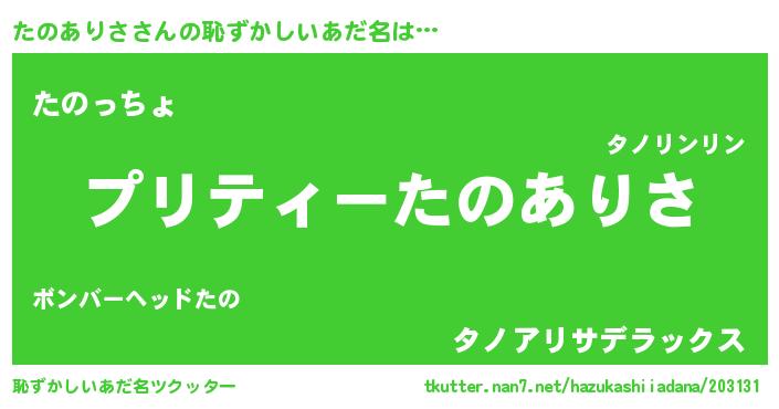 | 意味不明あだ名 | 『ペロリンたのありさ』『自称たのありさ』 |