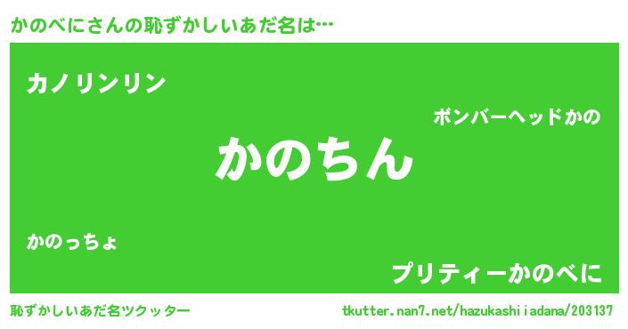 | ヘコむあだ名 | 『かのべに(遠い目)』『かのっちょ』 |