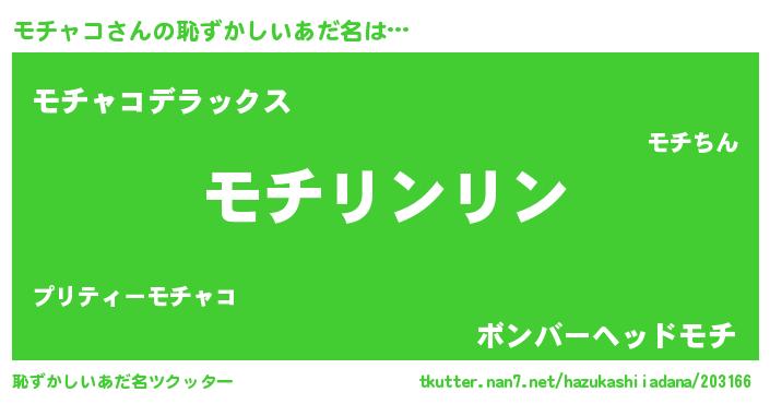 | ヘコむあだ名 | 『モチぷりん』『モチャコ(笑)』 |