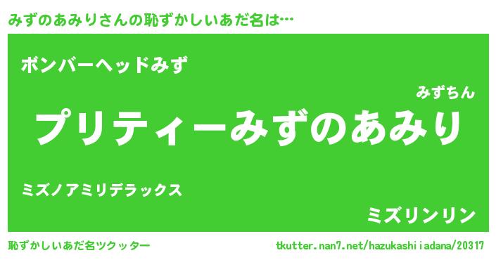 | ヘコむあだ名 | 『みずっふぃ~』『みずぷりん』 |