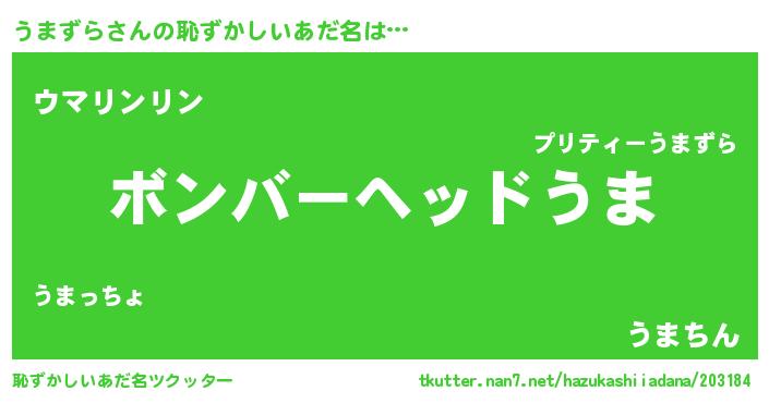 | ヘコむあだ名 | 『うま太郎』『うまずら(笑)』 |