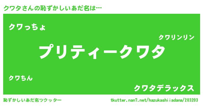 | ヒーロー風カッコイイあだ名 | 『スーパークワタ』『ウルトラクワタマン』 |